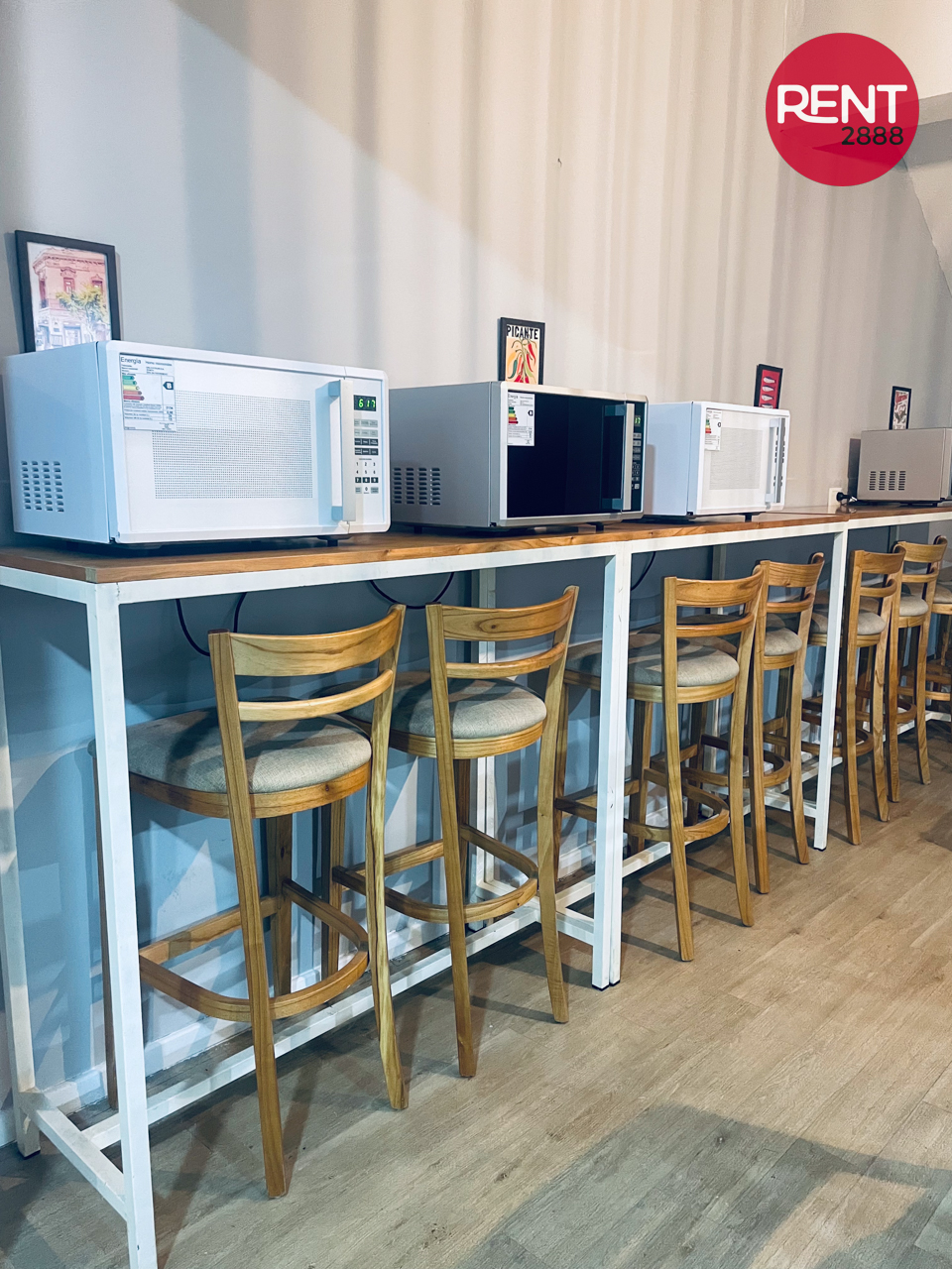 El edificio ofrece espacio común tipo cowork. No dispone de cocina para elaborar comidas.